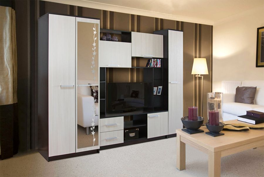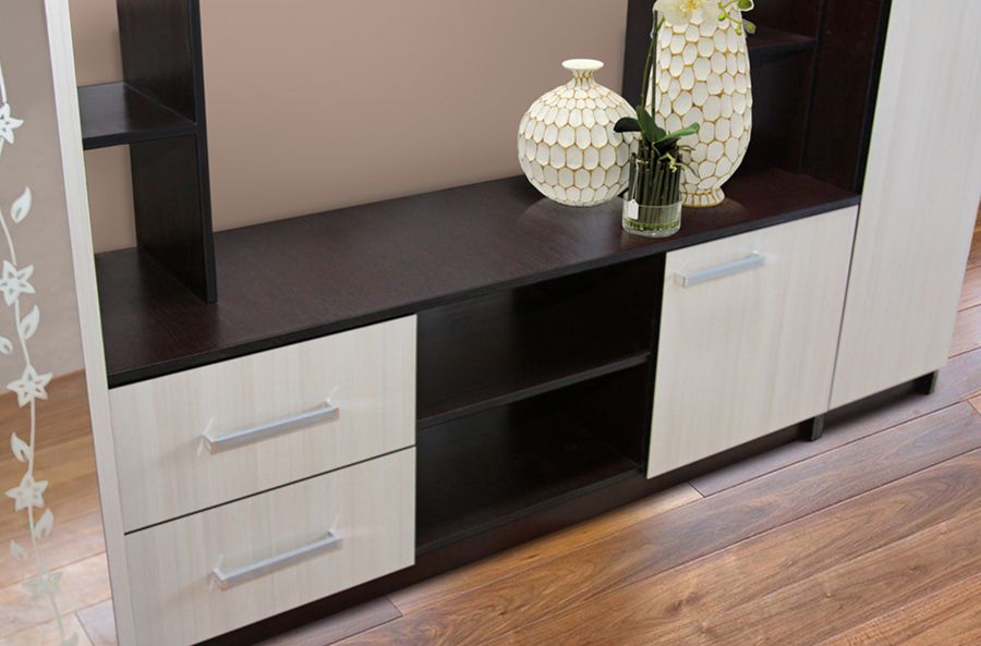 Шкаф для одежды оснащен штангой (металл), пенал - укомплектован полками.Универсальная сборка.