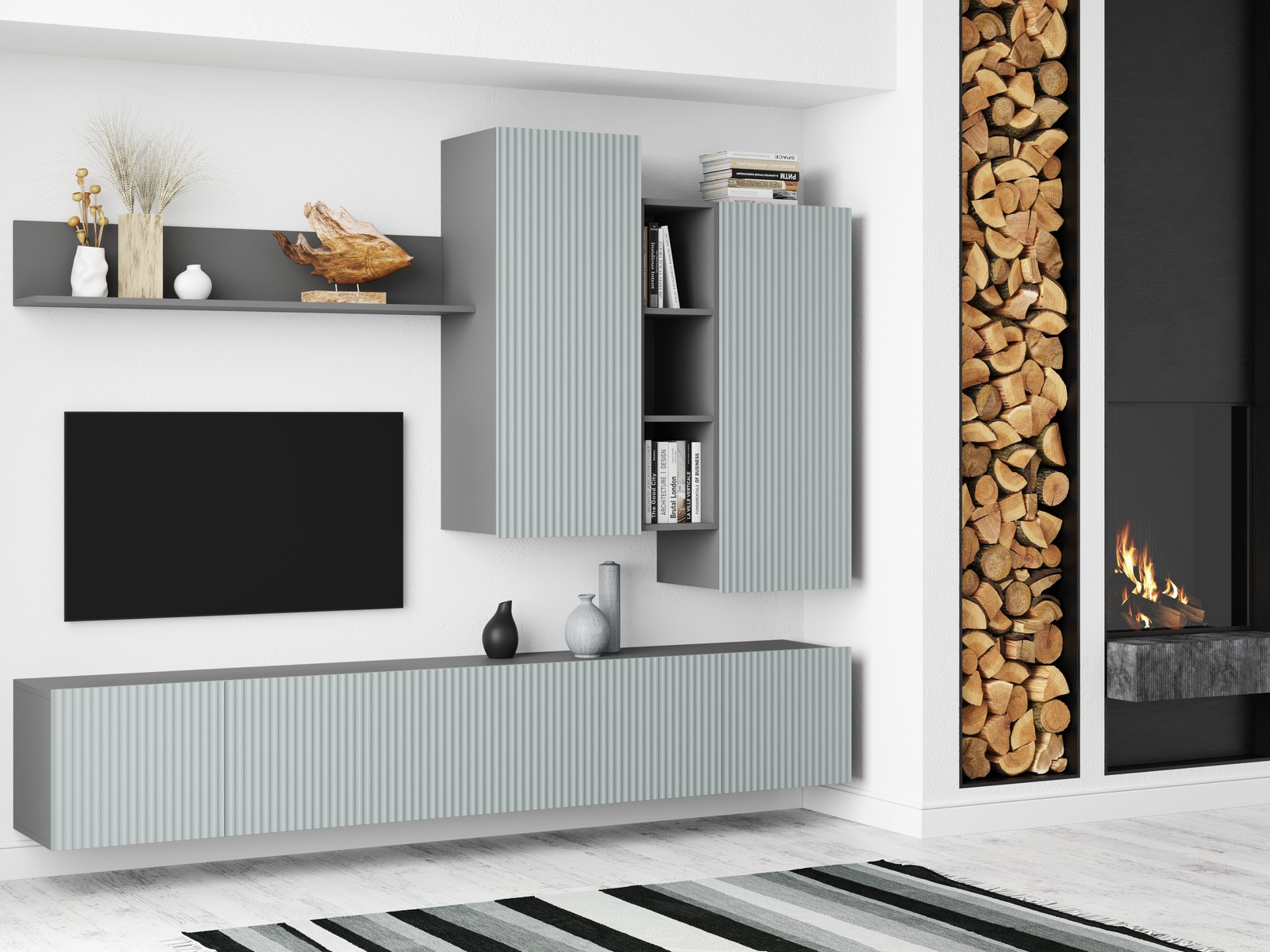 Стенка НМ-001 Сканди МДФ фасад грин грей софт