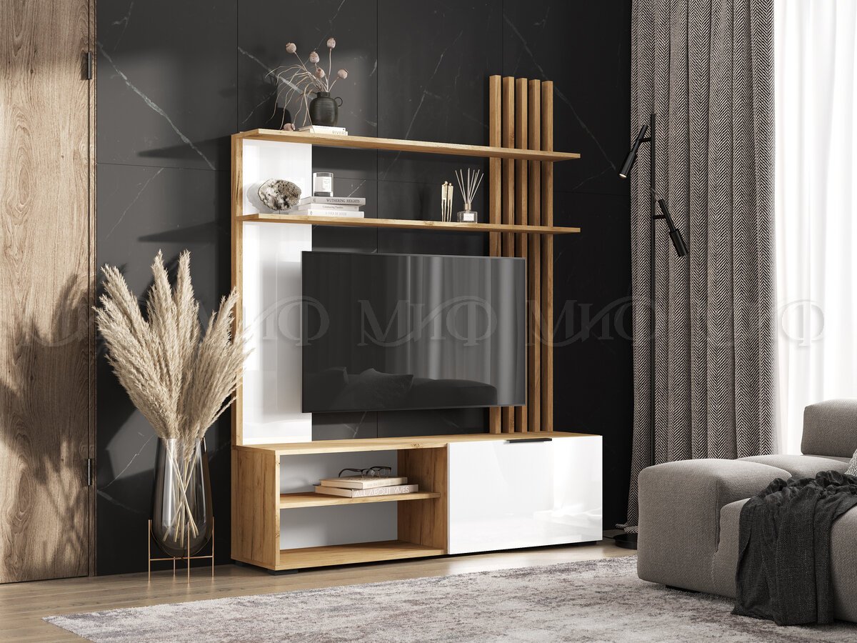 - Гостиная Роджина Белый глянец, Дуб крафт