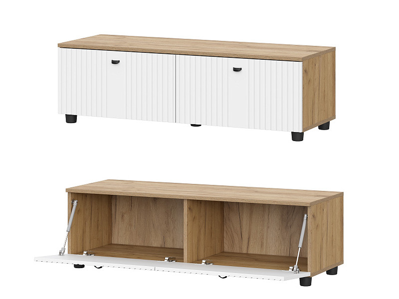 Тумба телевидеоаппаратура со створками Милан Дуб Золотой/Белый матовый