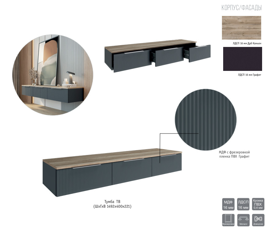 Габариты Ш*Г*В, мм: 1491*400*220 мм