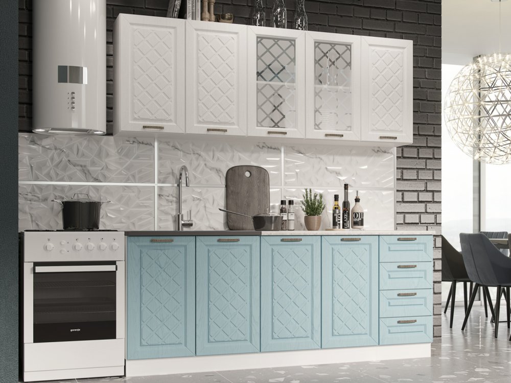 Кухня Агава МДФ 2000 акация белая-аква