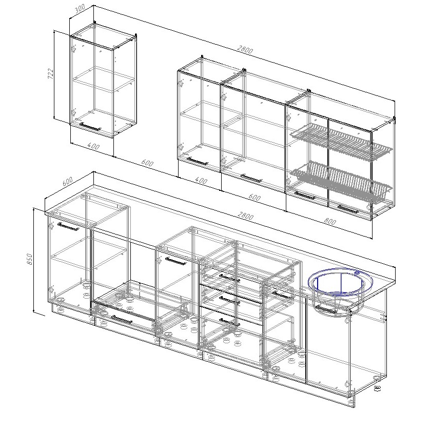 Ширина кухни: 2800 мм