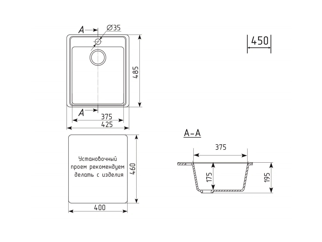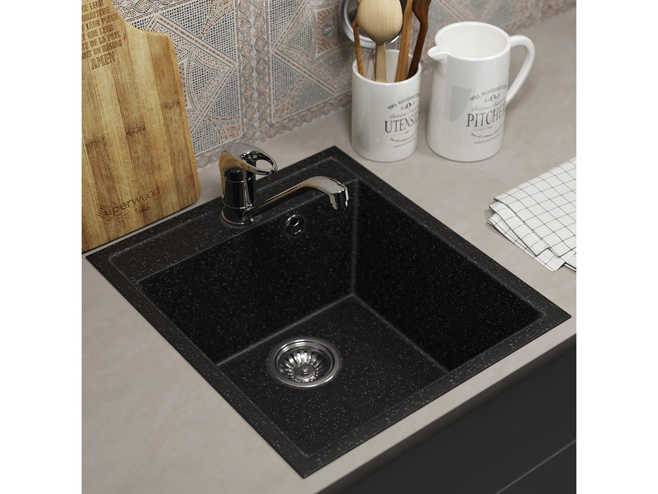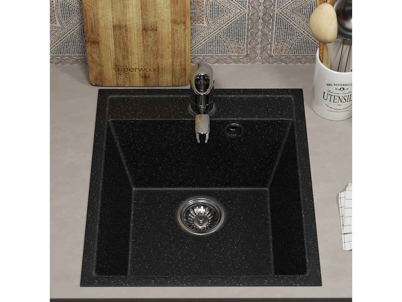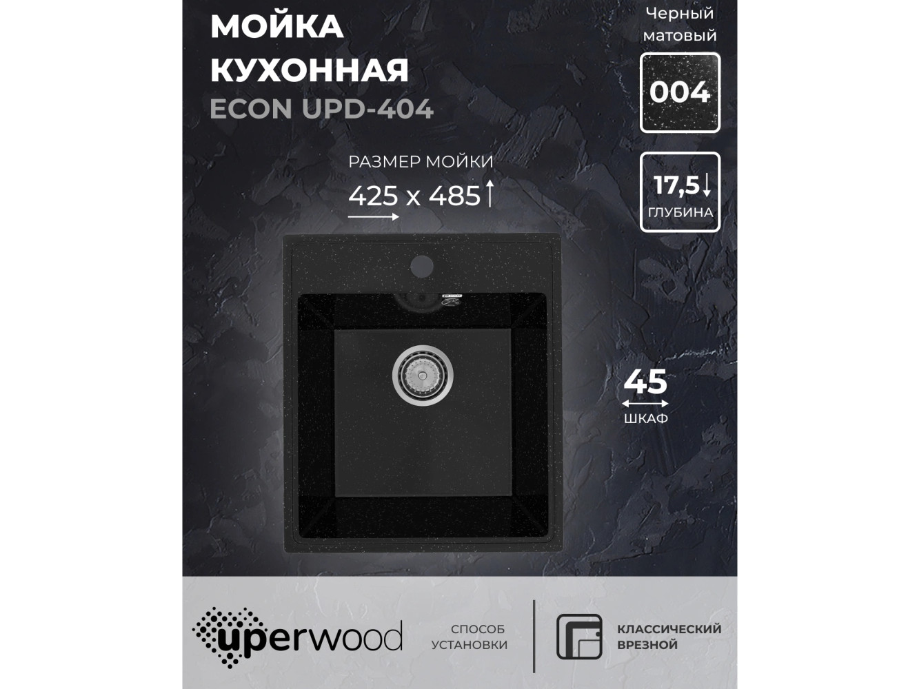 - Кухонная мойка Uperwood ECON UPD-404-004 черная матовая