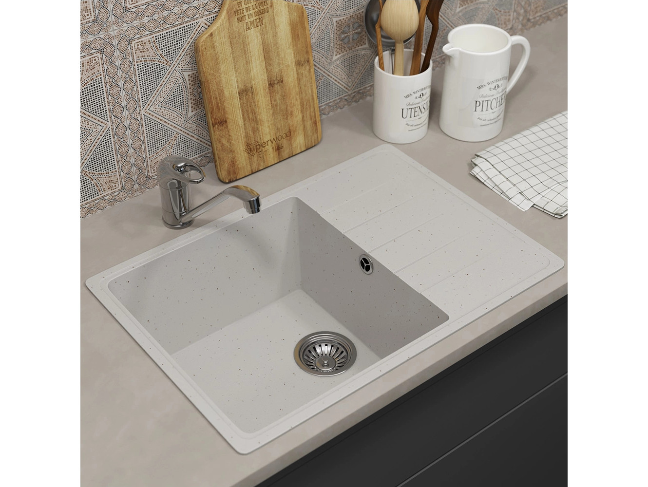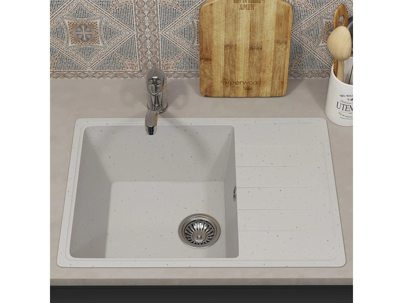 - Кухонная мойка Uperwood ECON UPD-506-001 белая матовая