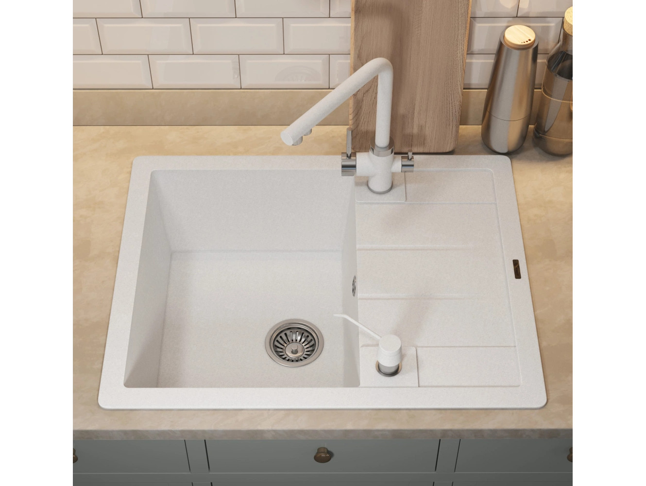 - Кухонная мойка Uperwood Quartz UPD-03-01 белая матовая