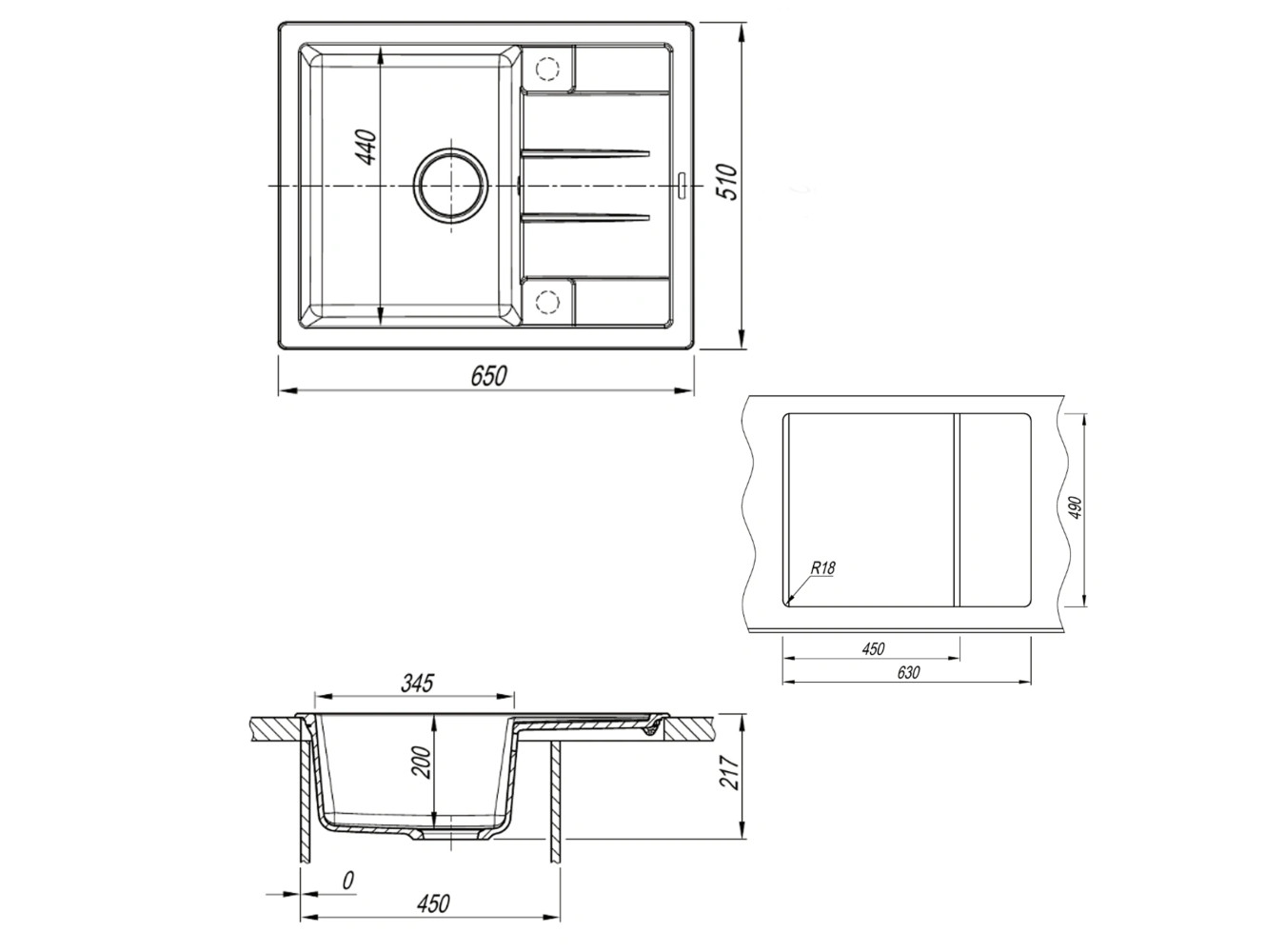 - Кухонная мойка Uperwood Quartz UPD-03-04 черная матовая