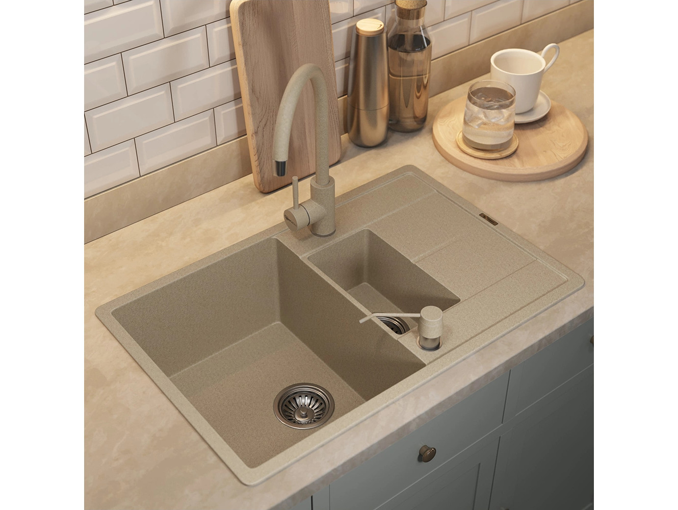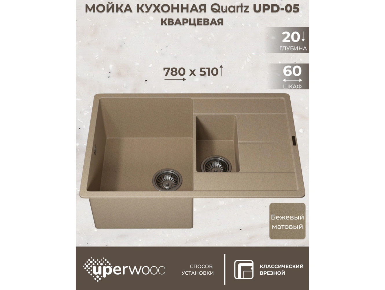 - Кухонная мойка Uperwood Quartz UPD-05-02 бежевая матовая