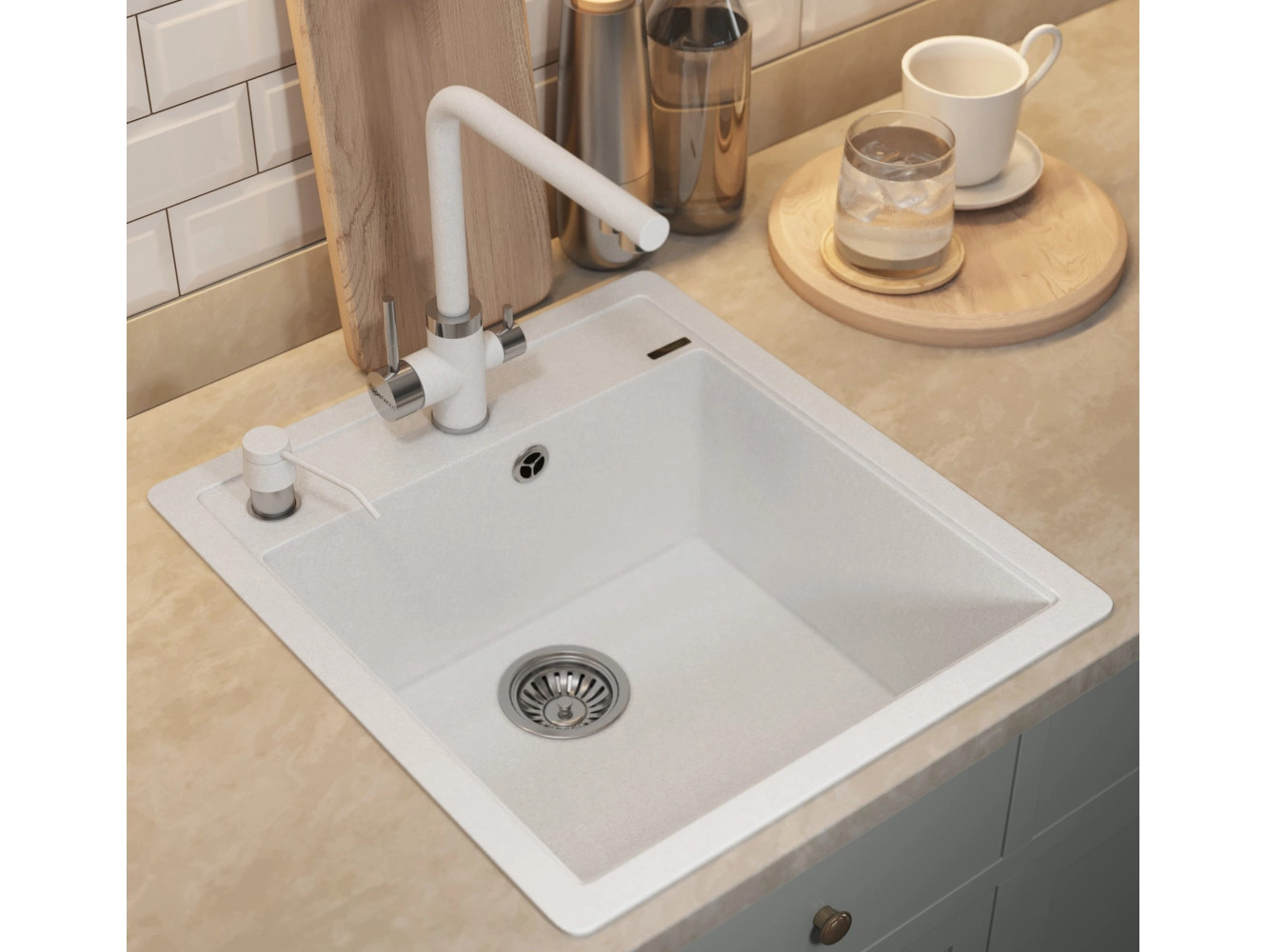 - Кухонная мойка Uperwood Quartz UPD-07-01 белая матовая