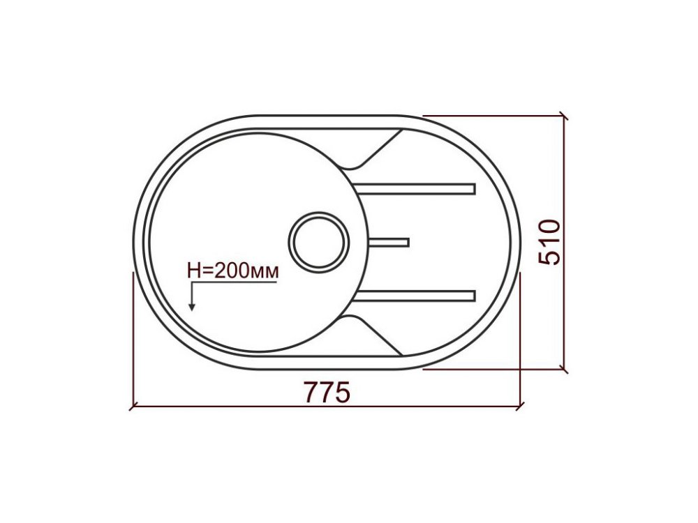 Длина мойки, мм: 775