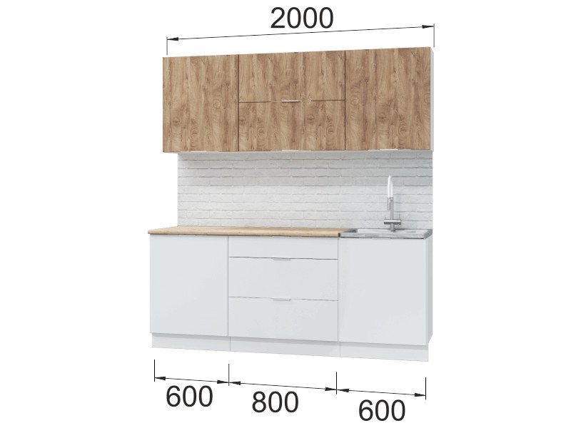 - Столешница: толщина 26 мм, цвет "Дуб бунратти", кром. материал (29*1 мм) "Белый"
