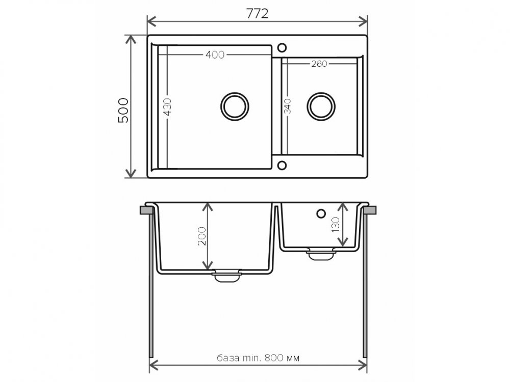 Минимальный размер тумбы под мойку, мм: 800