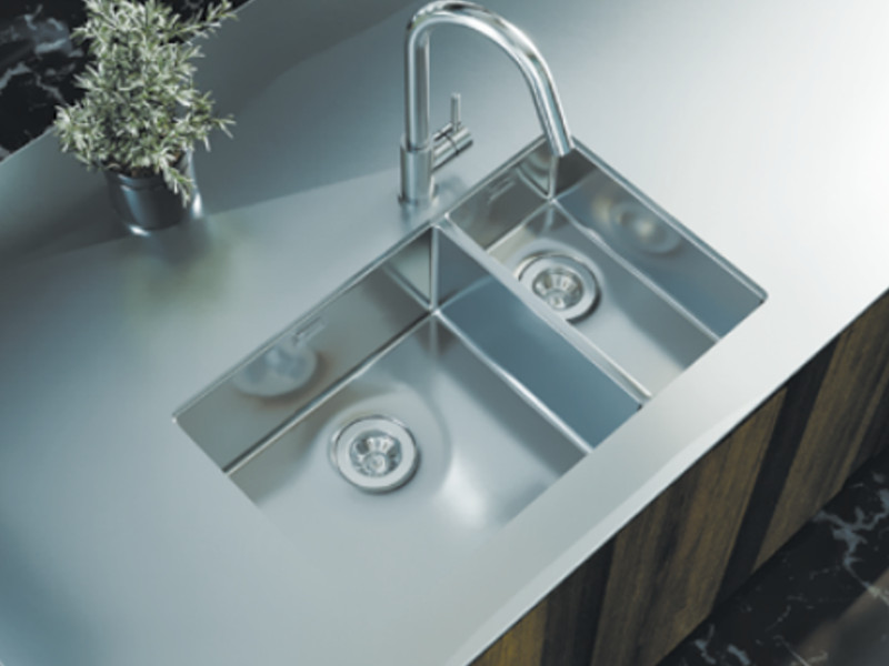Мойка изготовлена из высококачественной стали толщиной 1 мм марки AISI 304 и имеет минимальные углы закругления 10мм.