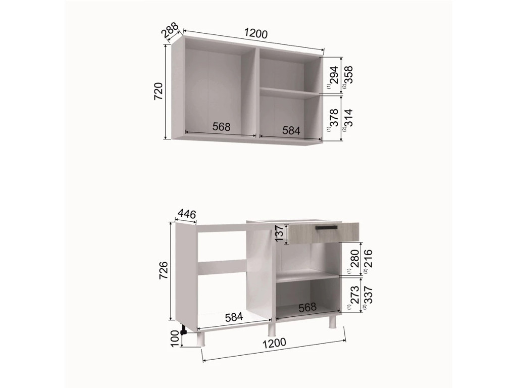- Высота верхних шкафов, мм 720