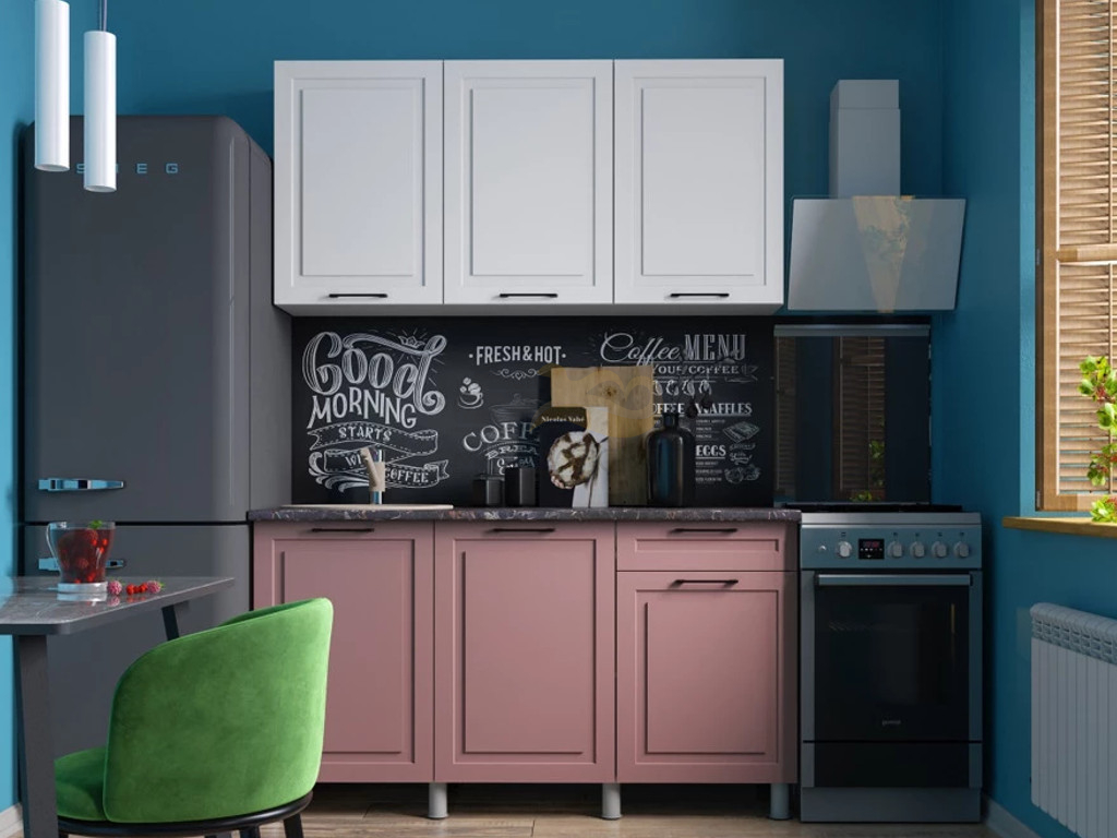 - Кухня Аликанте 1500 МДФ Белый снег/пудра без столешницы