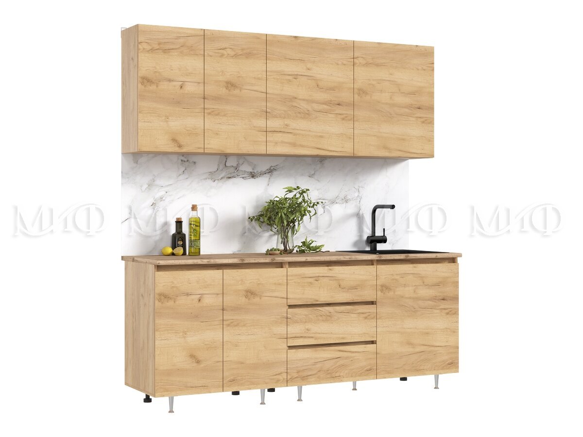 Кухня Челси 2000 мм Компановка №2 Дуб Крафт (Кастилло)