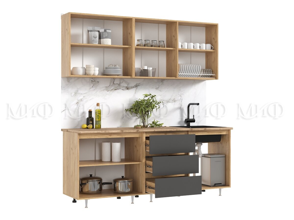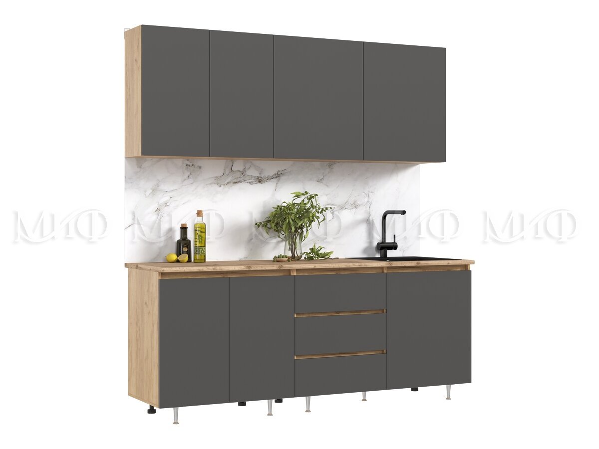 - Кухня Челси 2000 мм Компановка №2 Графит, Дуб Крафт (Кастилло)