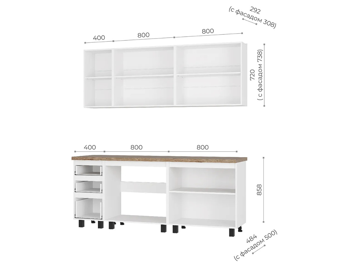 Размеры низ: ширина - 2000 мм, высота - 858 мм, глубина - 595 мм.