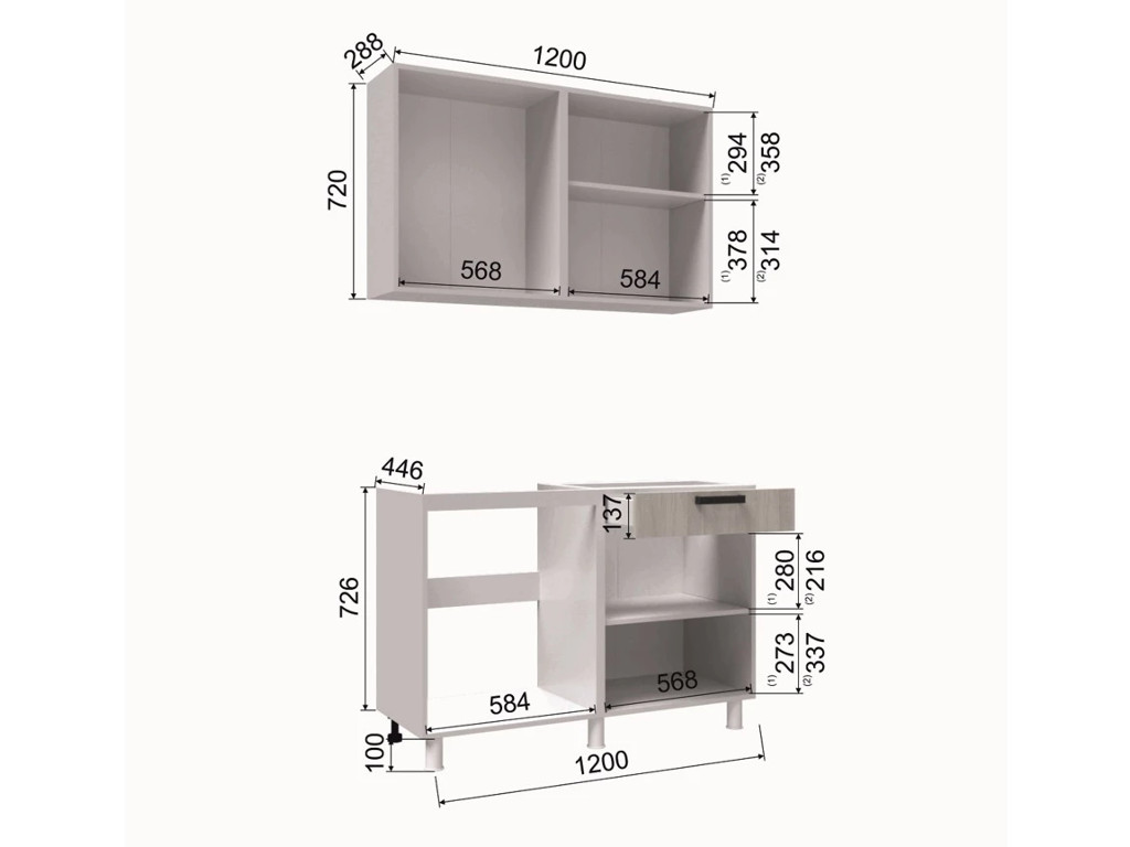 - Кухня Лига 1200 МДФ Сандал Белый/Сандал Серый без столешницы