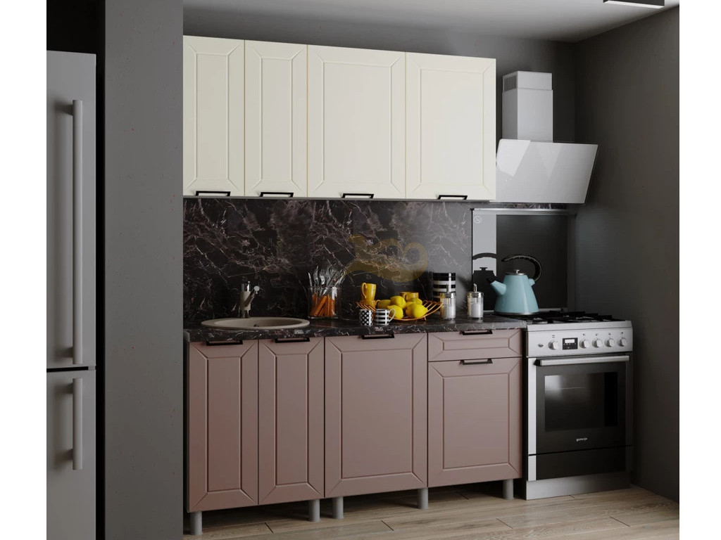 - Кухня Ривьера 1600 МДФ Карбон Брюле/Карбон Латте без столешницы