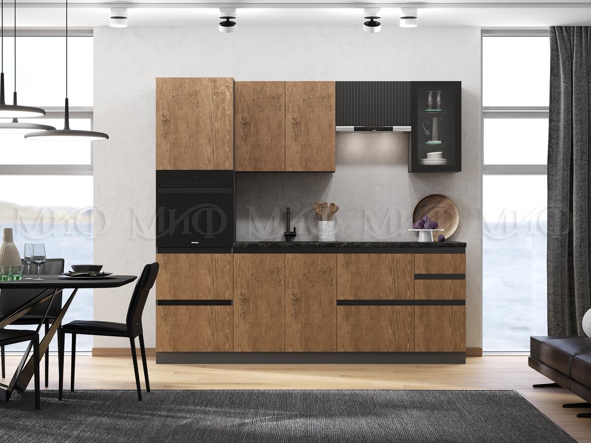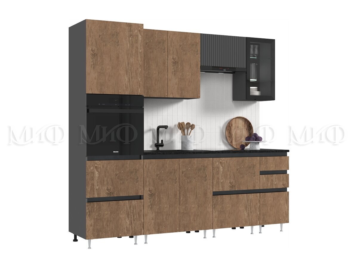 - Кухня Техно-6 2400 мм Графит/Экзотическое дерево Амазония