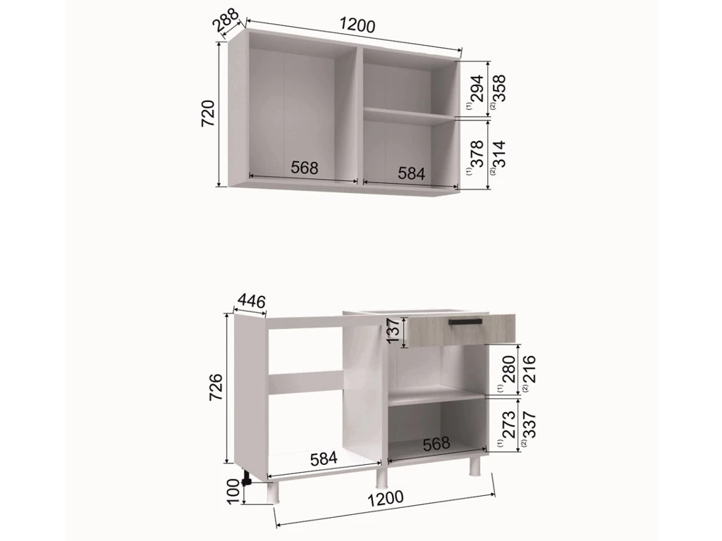 - Высота верхних шкафов, мм 720