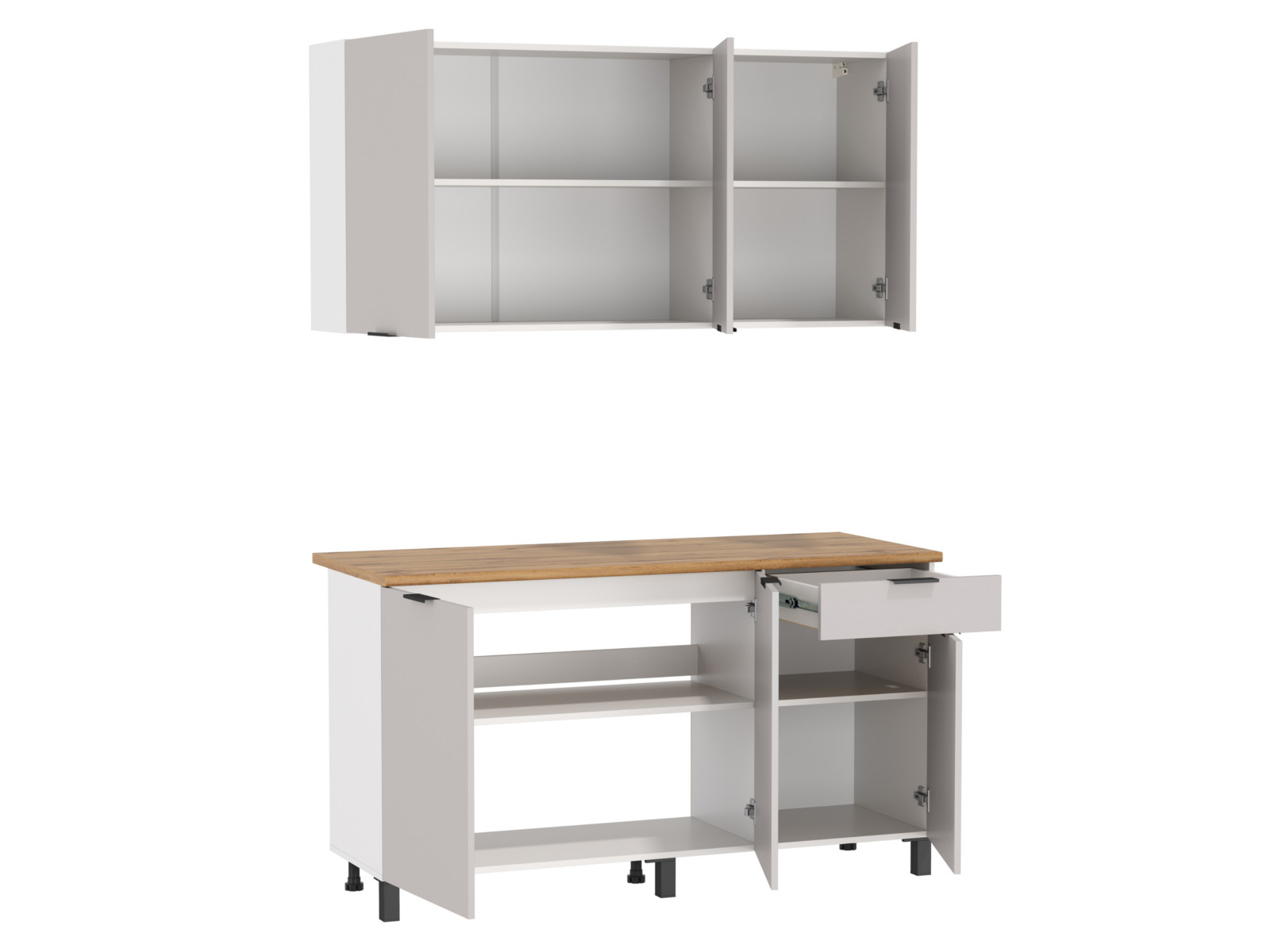 Цвет: белый / фасад: ЛДСП кашемир / столешница: дуб вотан / ДВПО: белый