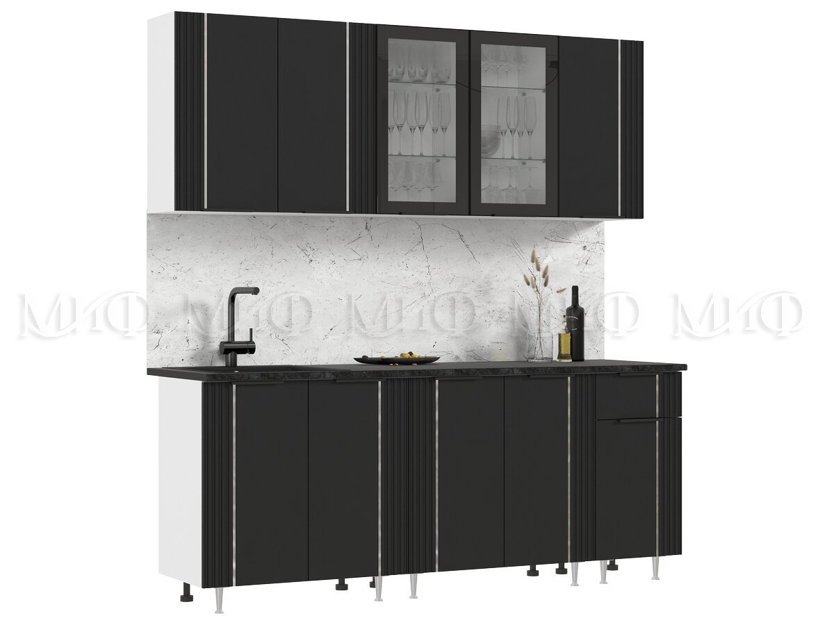 - Кухня Виктория 2000 мм Пластер Блэк/Белый (Кастилло темный)