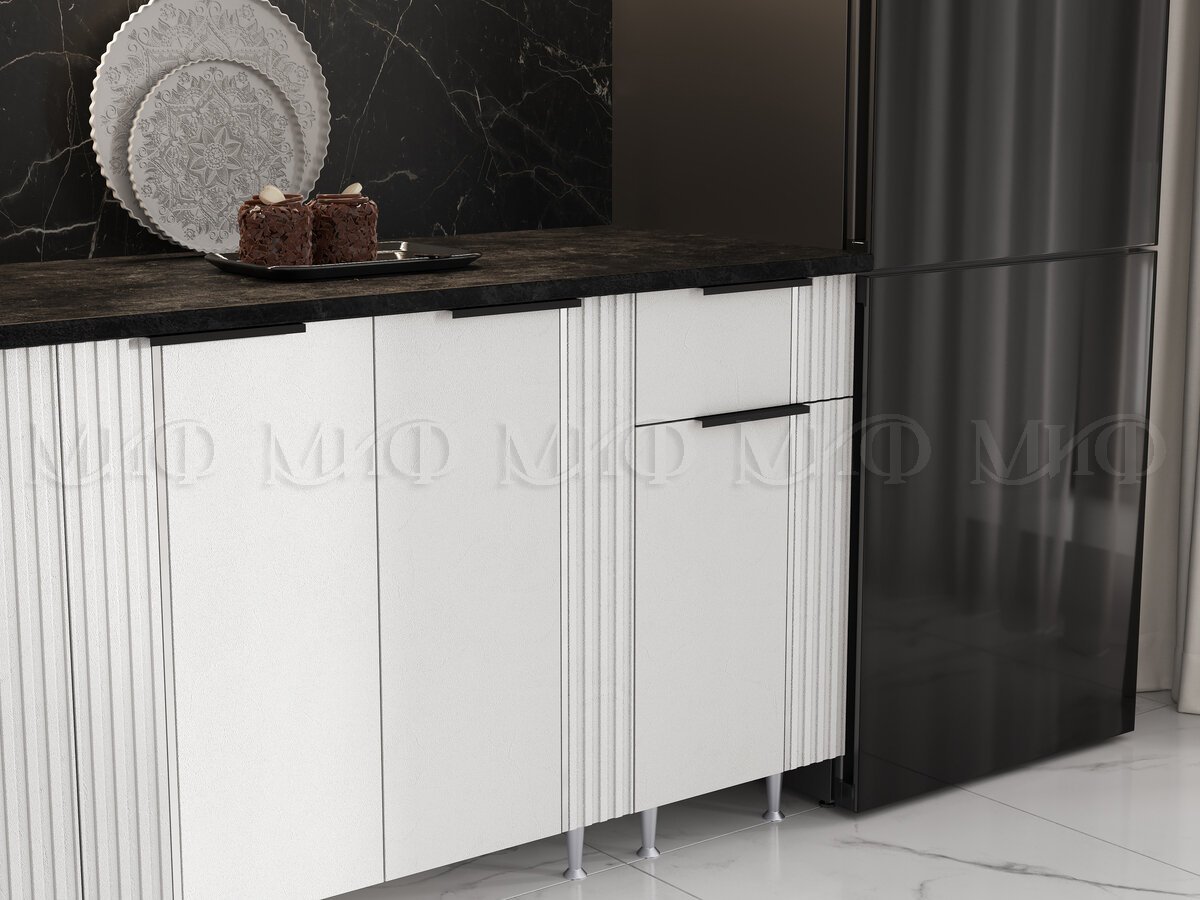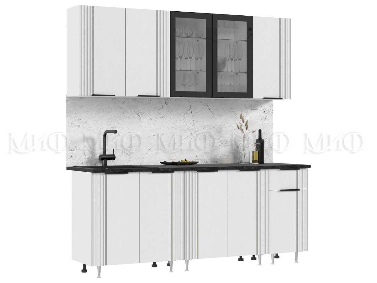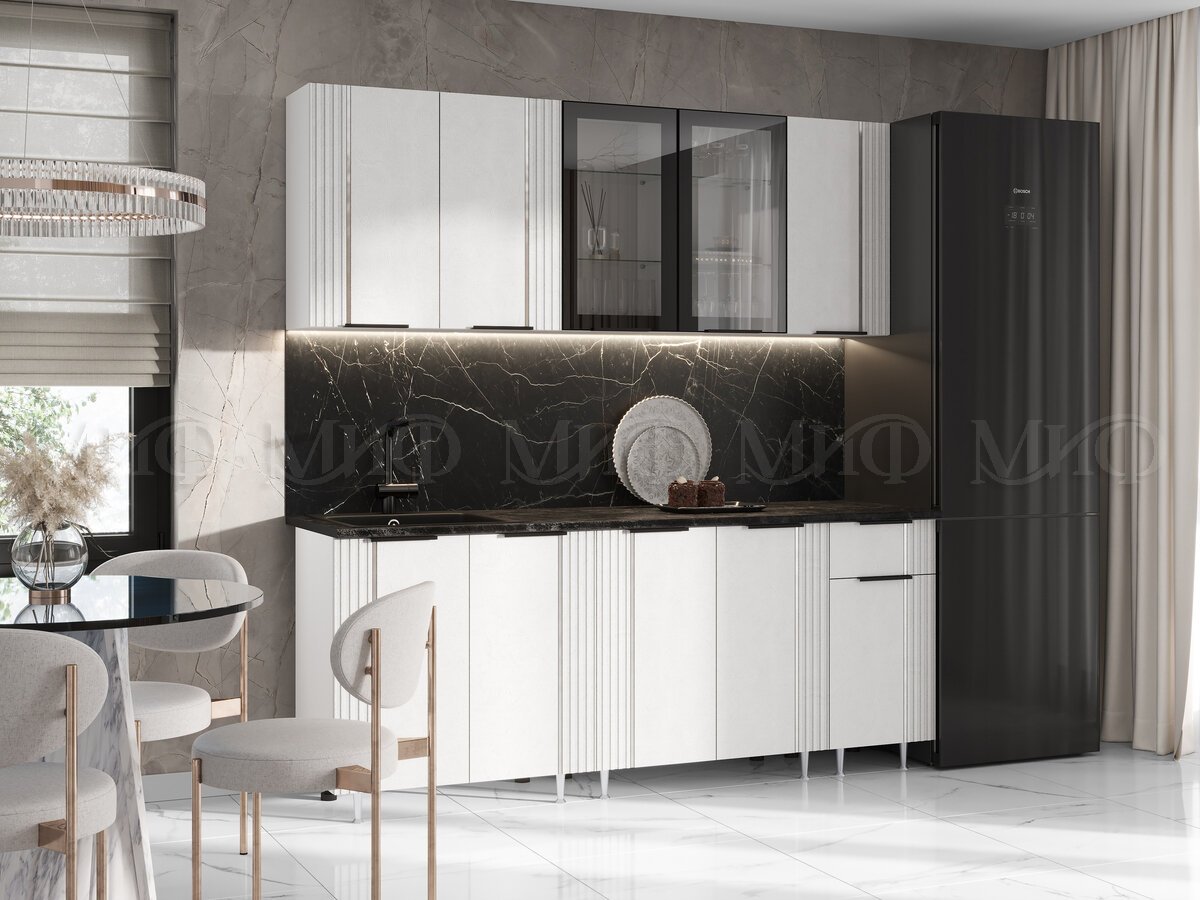- Кухня Виктория 2000 мм Пластер Бьянко/Белый (Кастилло темный)