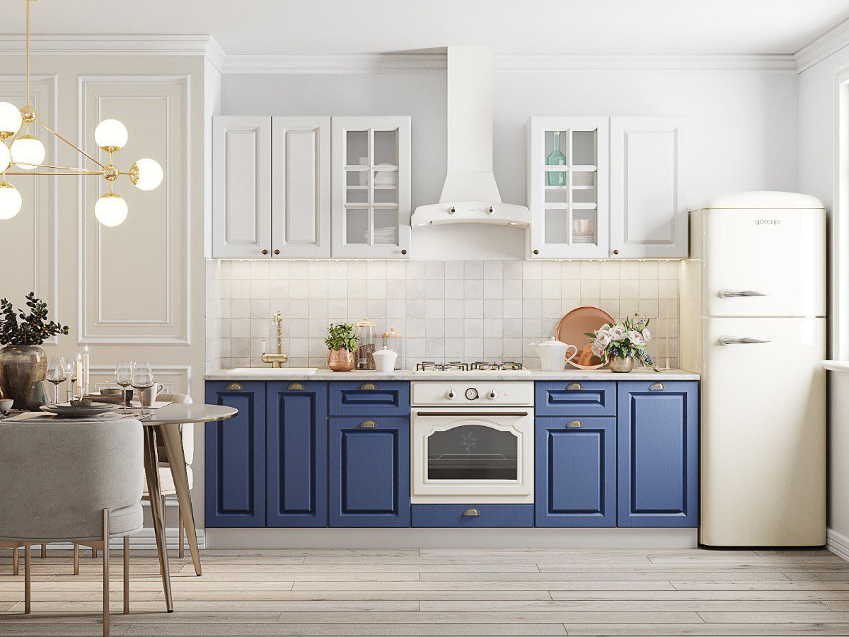 Высота: верхних шкафов 720 мм, нижних - 820 мм.