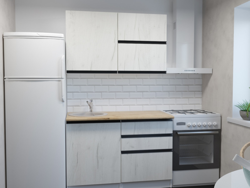 Мойка, смеситель, стеновая панель и посудосушитель в комплект гарнитура не входят.