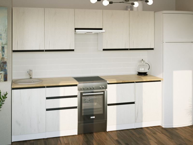 Мойка, смеситель, стеновая панель и посудосушитель в комплект гарнитура не входят.