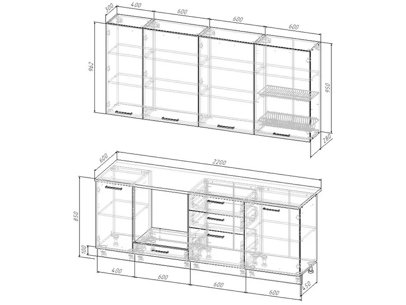 Ширина кухни: 2200 мм