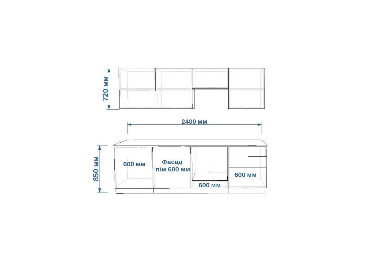 - Кухонный гарнитур арт 35 Лайн Тальк 2400 мм