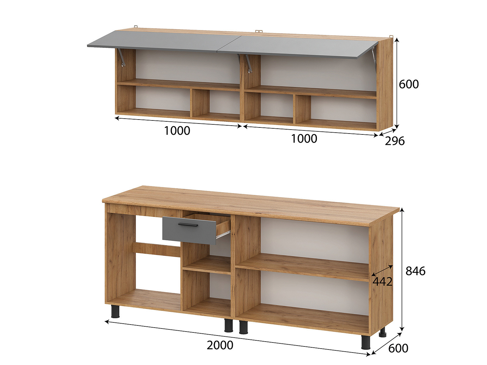 - Глубина изделия, мм: 442/600