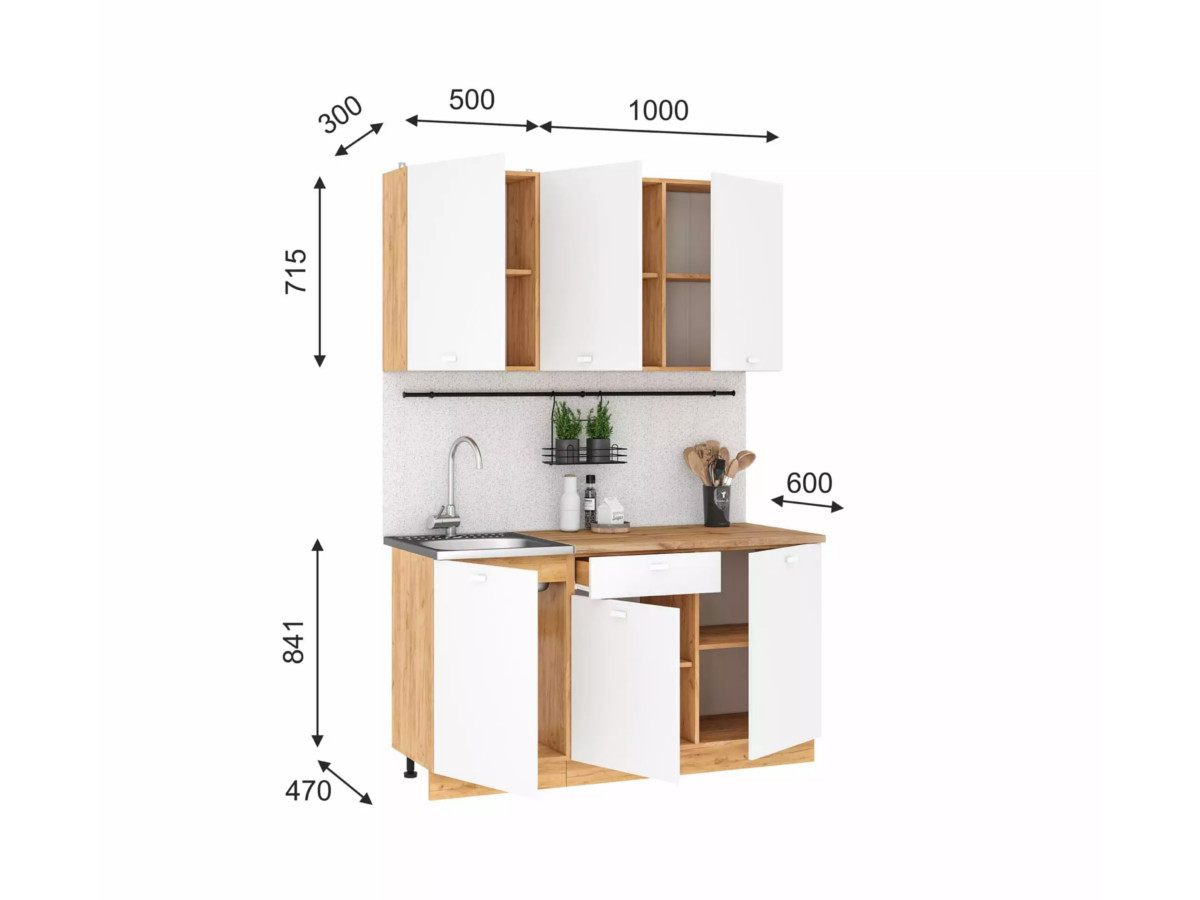 Нижние модули: ШНМ 500, ШН1Я 1000 (ВхГ) 841х470 мм, высота указана с учётом столешницы