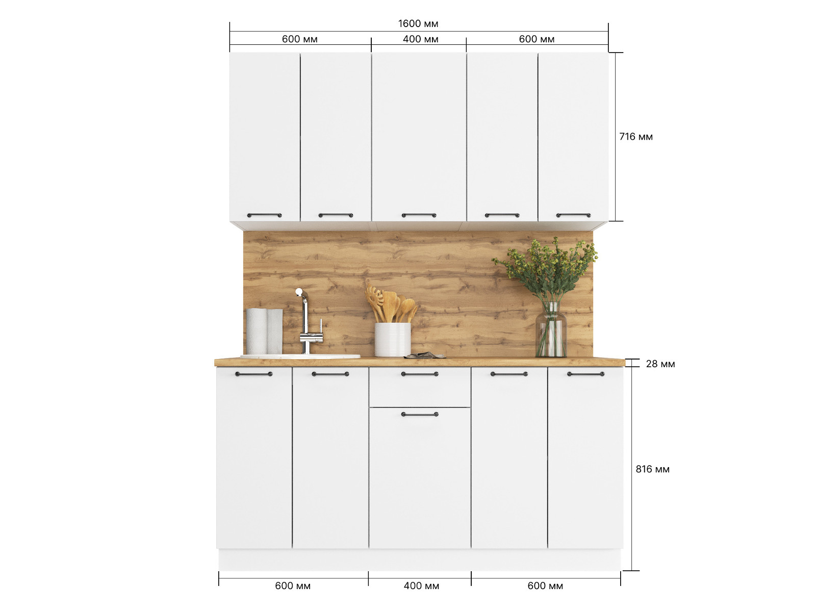 - Кухонный гарнитур Хелмер 1600 мм ЛДСП Белый/Белый
