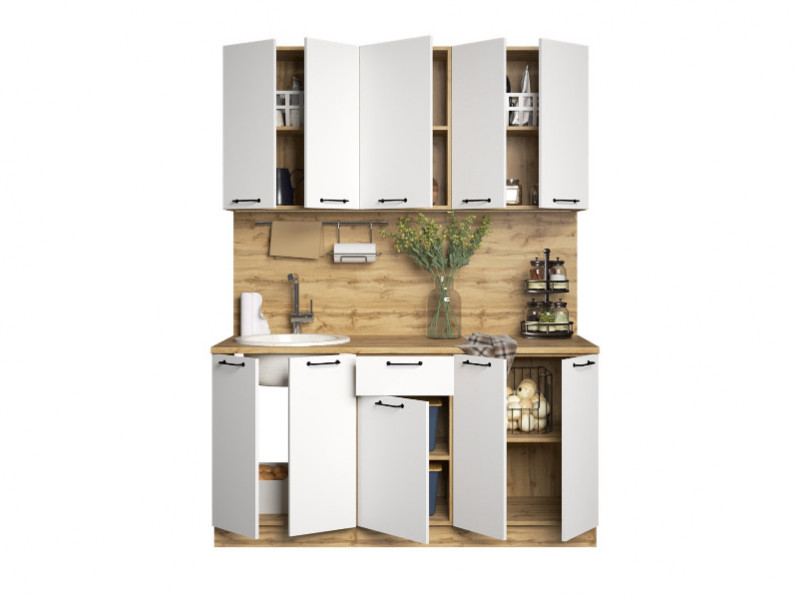 - Кухонный гарнитур Хелмер 1600 мм ЛДСП Вотан/Белый