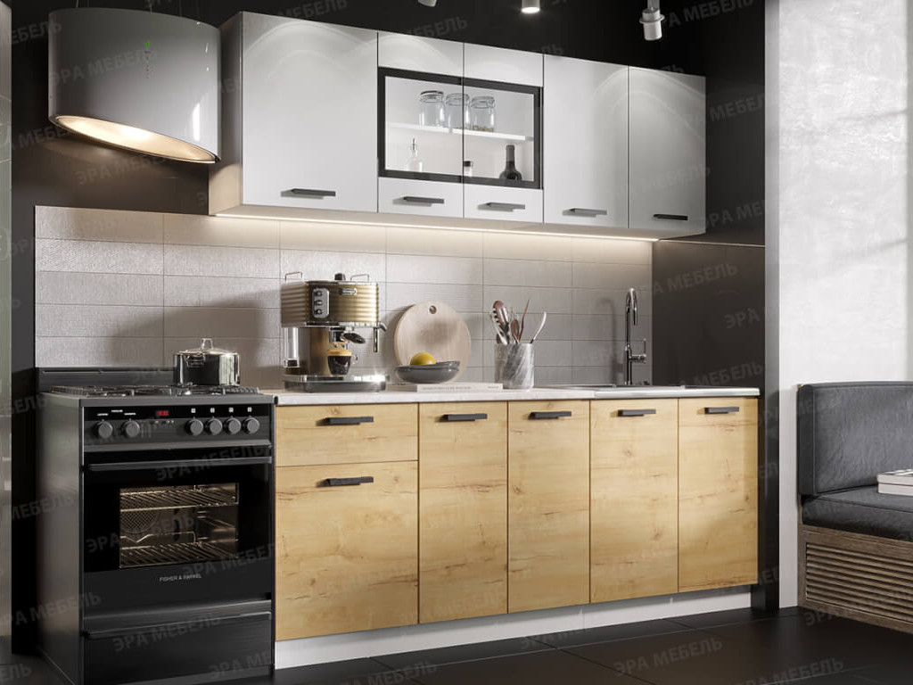 - Кухонный гарнитур Хозяюшка ЛДСП 2000 белый гладкий/дуб вотан