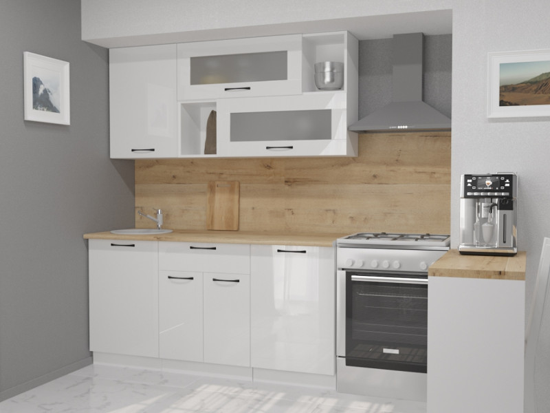 Мойки, смесители и посудосушители в комплекты гарнитуров не входят.