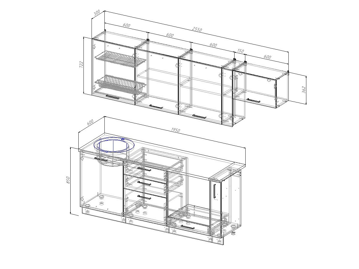 - Кухонный гарнитур Капри 2550 верх МДФ
