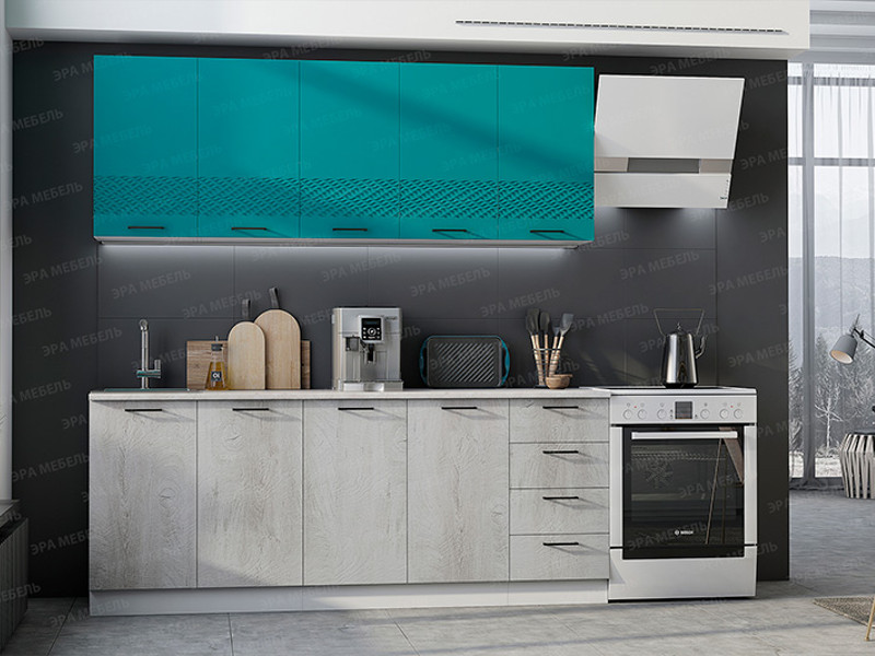 Кухонный гарнитур Лагуна МДФ 2000 морская волна софт/дуб седой