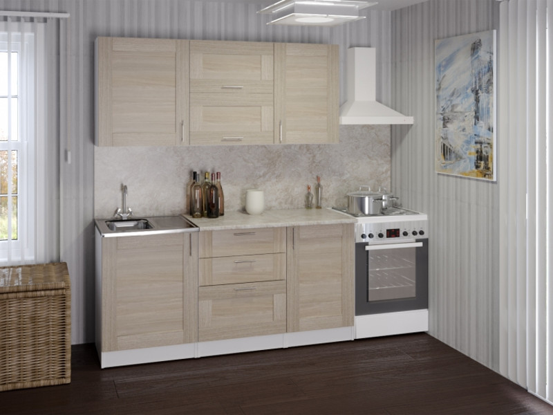 Мойка, смеситель, стеновая панель и посудосушитель в комплект гарнитура не входят.