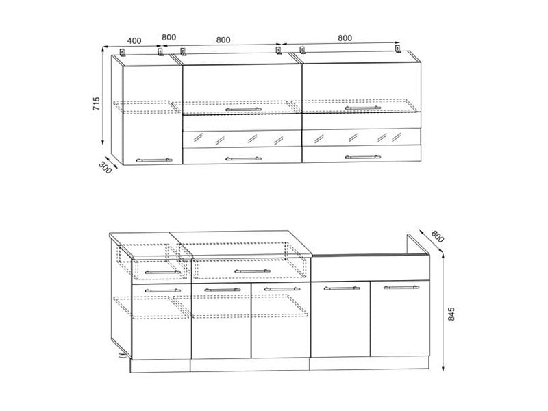 - Глубина верхних шкафов - 300 мм.