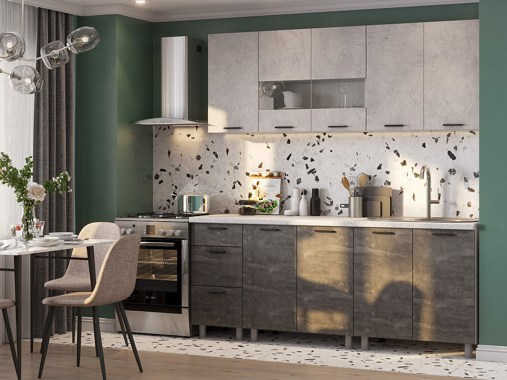 Кухонный гарнитур арт 44 Лайн Обсидиан Дуб сонома 2800 мм