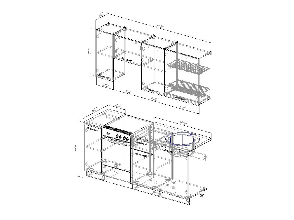 Ширина кухни: 1800 мм