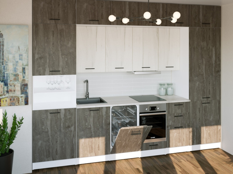 Мойка, смеситель, стеновая панель и посудосушитель в комплект гарнитура не входят.