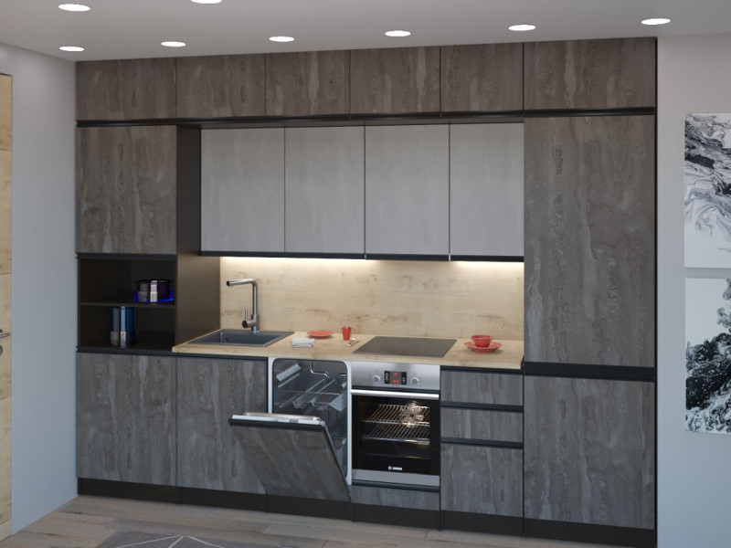 Мойка, смеситель, стеновая панель и посудосушитель в комплект гарнитура не входят.