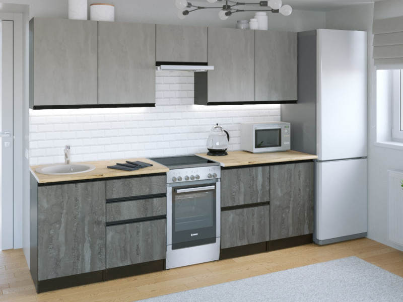 Мойка, смеситель, стеновая панель и посудосушитель в комплект гарнитура не входят.