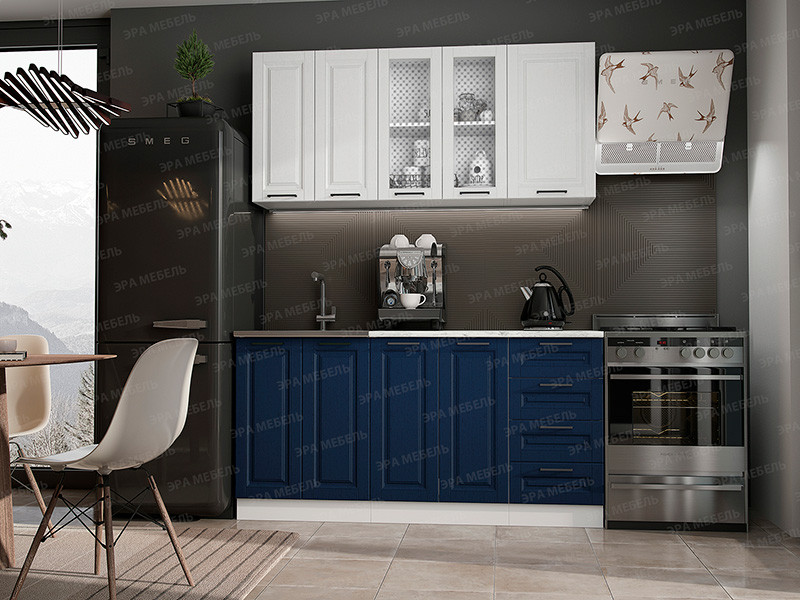 Кухонный гарнитур Вита МДФ 1600 шато белый/шато индиго